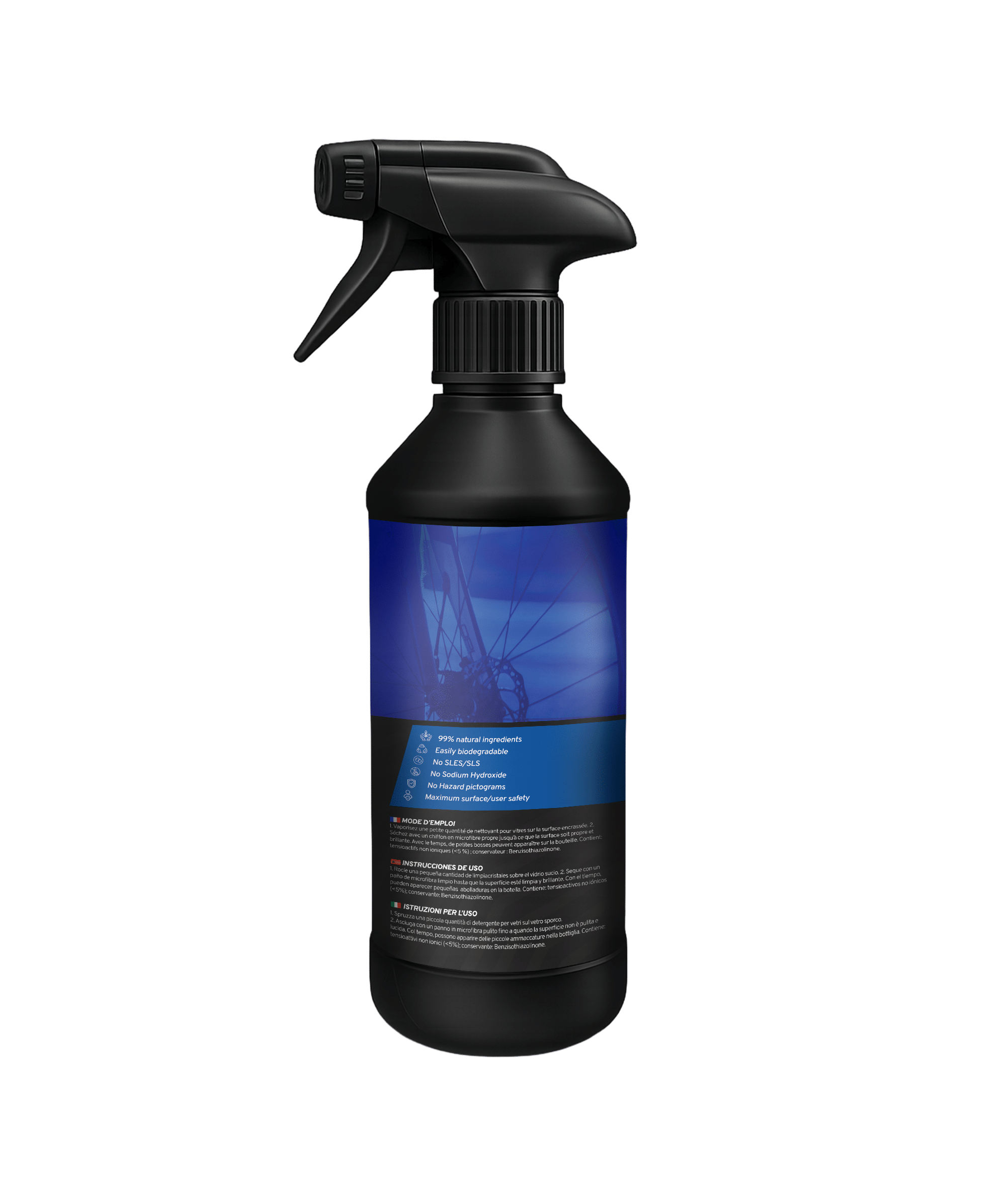 De flacon bevat 500ml product. Altijd goed schudden voor gebruik. Spray de fiets in en laat het een aantal minuten inwerken. Het is aan te raden om met een borstel al het zichtbare vuil (modder, gras, zand) handmatig te verwijderen. Na het reinigen afspoelen met schoon water. Bij voorkeur warm water. Voor het mooiste resultaat adviseren we om de fiets drogen met een microvezeldoek en nadien te behandel met de Velorest Bike Protector.